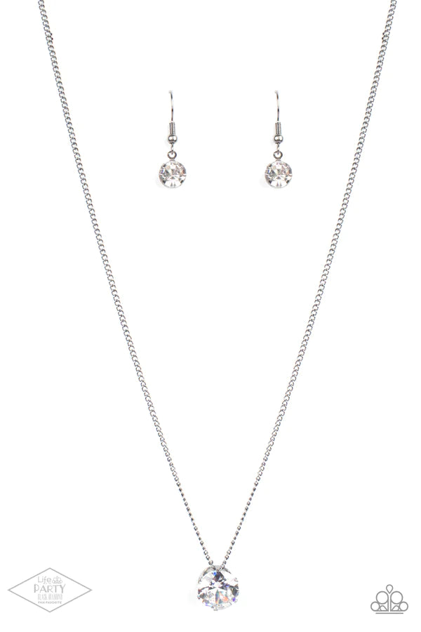 A single rhinestone sparkles brilliantly at the bottom of a dainty gunmetal chain, creating a stunning solitaire design. Features an adjustable clasp closure.